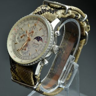 - Zustand: Uhr ist komplett original. Die Lünette ist der Referenz entsprechend korrekt. Die Lünette weist Dellen auf und der Minutenzeiger des rechten Totalisatoren ist nachlackiert. Zifferblatt in tollem Zustand mit sehr schönem cremefarbenen Lumen.