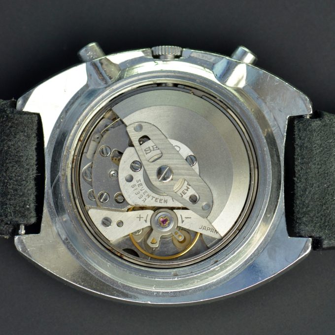 Dies ist eine sehr frühe Version aus 1969 mit dem frühen, bis ca. Mitte 1970 verwendetem „notched“ Gehäuse (Kerbe auf der Oberseite des Gehäuses bei der Krone) und der „Proof/Proof“ (Zifferblatt/Rückdeckel) Markierung.