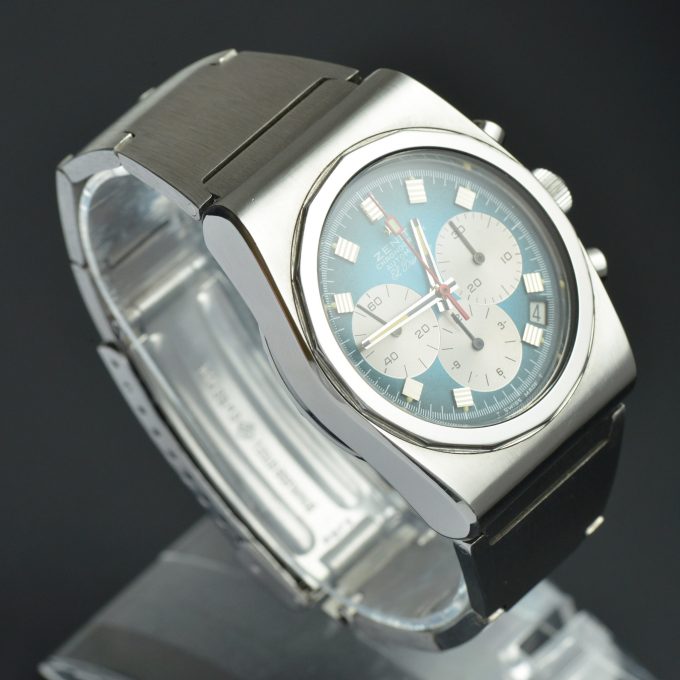 Uhren unverkäuflich, unverkäuflichSehr ausgefallener Zenith Manufakturchronograph in Traumzustand an Lobster-Stahlarmband.